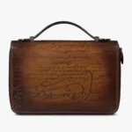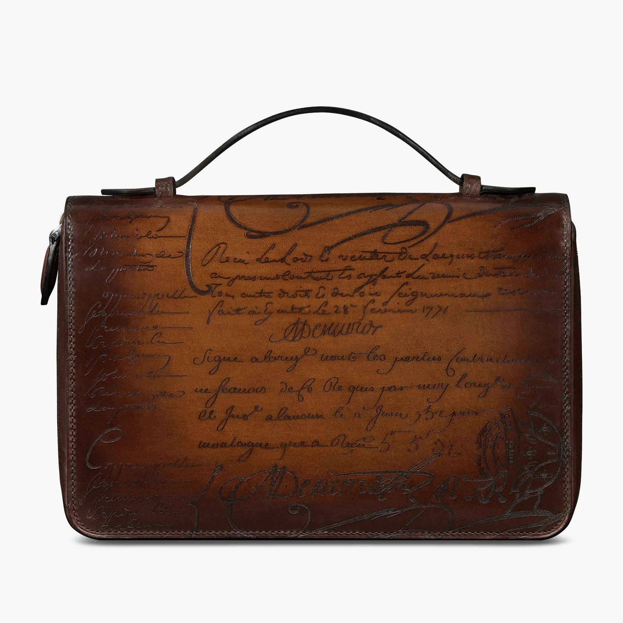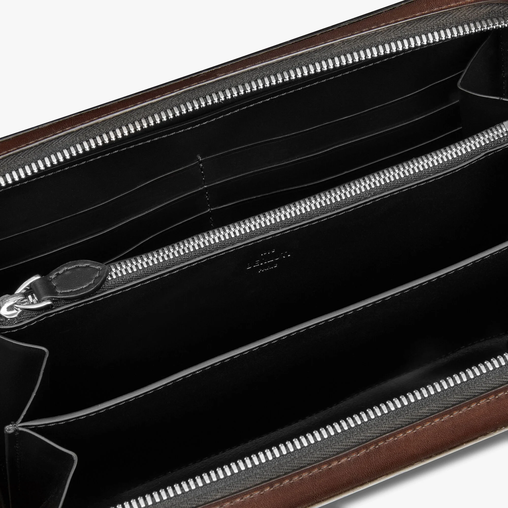 Una fusione di successo, questo modello reinterpreta la forma di una cartella in versione clutch. Il meglio di entrambi i mondi: un posto per ogni cosa e ogni cosa al suo posto, ma senza ingombro.